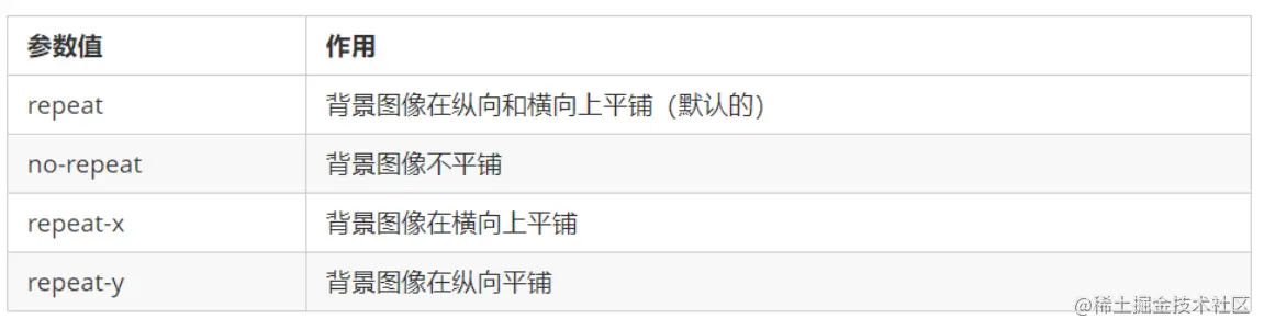 | fixed | 背景图片不会随着页面的滚动而滚动。 |