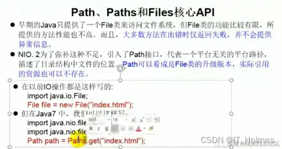 在NIO.2有一个Path接口,它可以看做File类的升级版本。