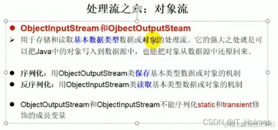 - ObjectOutputStream 和 ObjectInputStream不能序列化static和transient修饰的成员变量。