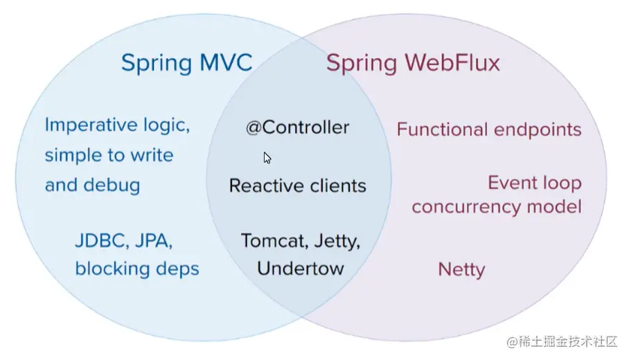WebFlux 不是 Spring MVC 的替代方案!虽然 WebFlux 也可以被运行在 Servlet 容器上(需是 Servlet 3.1+ 以上的容器),但是 WebFlux 主要还是应用在异步非阻塞编程模型,而 Spring MVC 是同步阻塞的,如果你目前在 Spring MVC 框架中大量使用非同步方案,那么,WebFlux 才是你想要的,否则,使用 Spring MVC 才是你的首选。