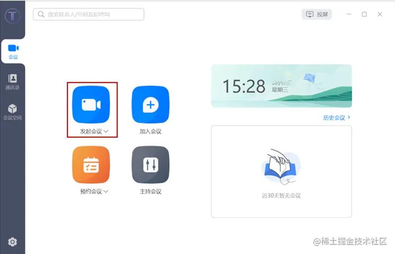 4. 点击“发起会议”、“预约会议”,即可体验创建立即会议、预约会议等功能。