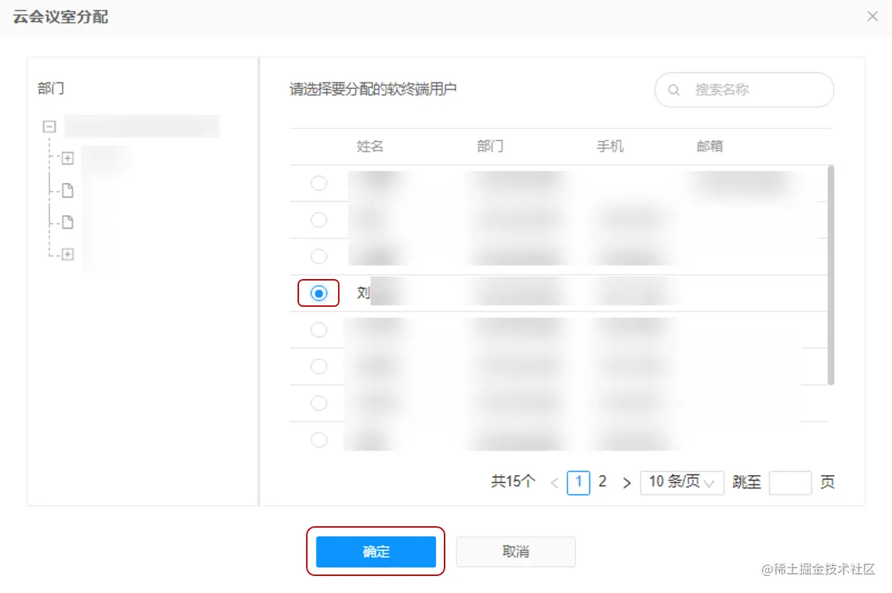 2. 在“云会议室分配”窗口,选择指定的用户。