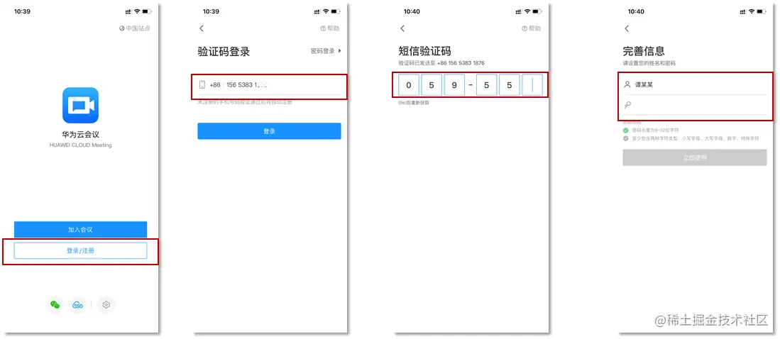 与会者没有华为云会议帐号时,下载软终端,从会议发起人或其他与会者获取会议ID后,输入会议ID(和会议密码),即可匿名入会。