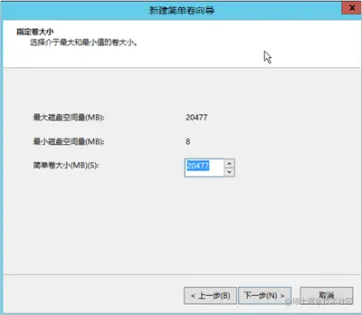 根据需要指定卷大小,默认为最大值,单击“下一步”