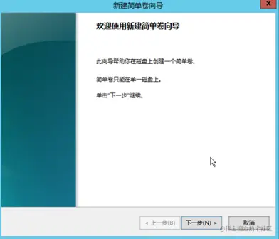 弹出“新建简单卷向导”对话框,根据界面提示,单击“下一步”,这刚买电脑估计大家都自己扩过盘符
