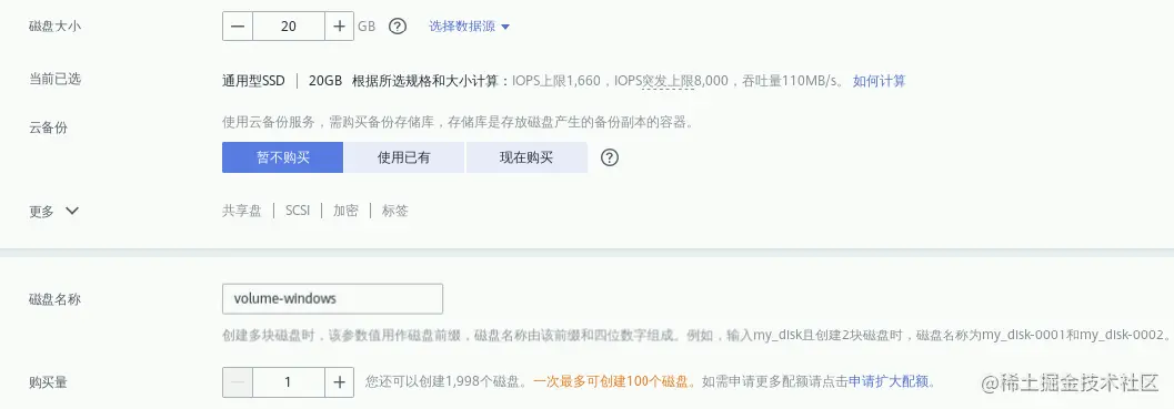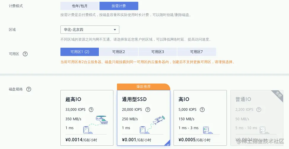 ④【磁盘规格】:通用型SSD(若无此规格,可选界面存在的规格)