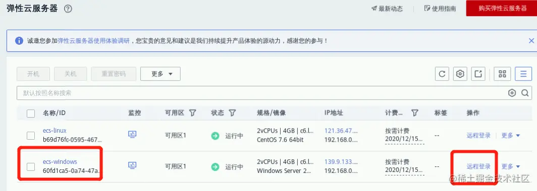 然后选择相应的windows弹性云服务器ECS,最后点击远程登录就行