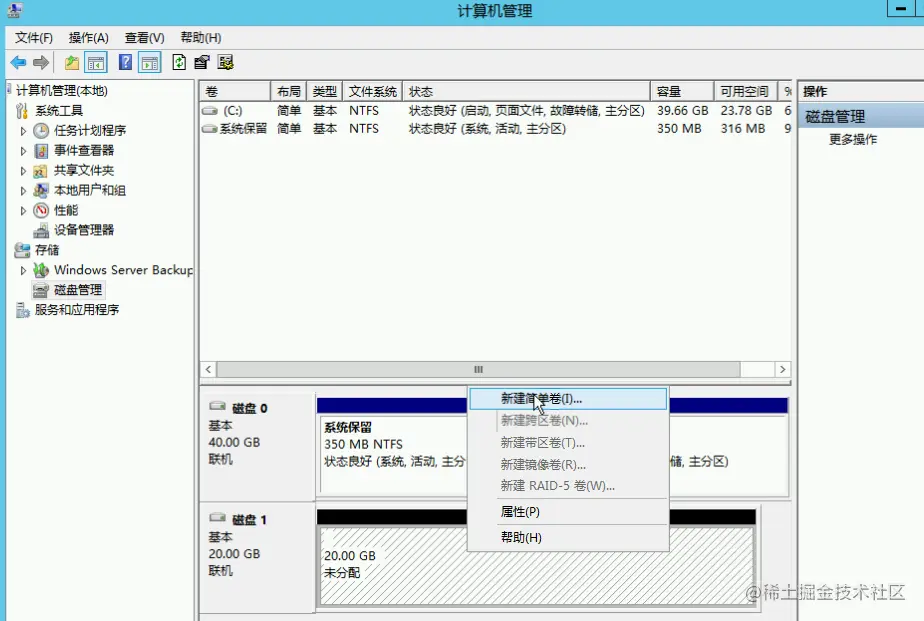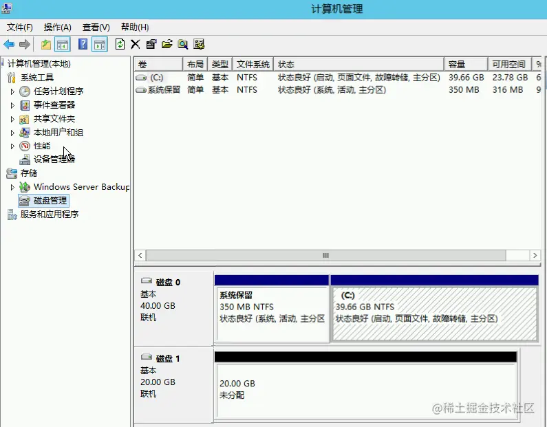 在弹性云服务器ECS桌面,页面下滑选择“开始”,然后在菜单列表里面选“服务器管理器”,然后文件和存储服务->磁盘->工具 -> 计算机管理页面;