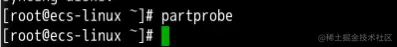 执行以下命令,将新的分区表变更同步至操作系统里面