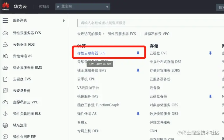选择“服务列表>弹性云服务器ECS”。进入弹性云服务器ECS页面