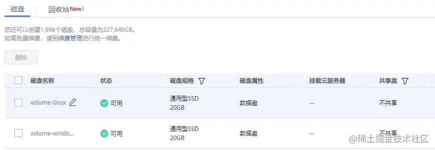 然后返回“磁盘列表”,在“云硬盘EVS”主页面,查看云硬盘EVS状态。待云硬盘EVS状态变为“可用”时,表示创建成功啦,用起来