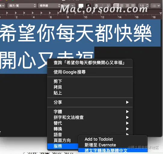 Mac 没有显示「将文字转换为简体中文/繁体中文」的选项?