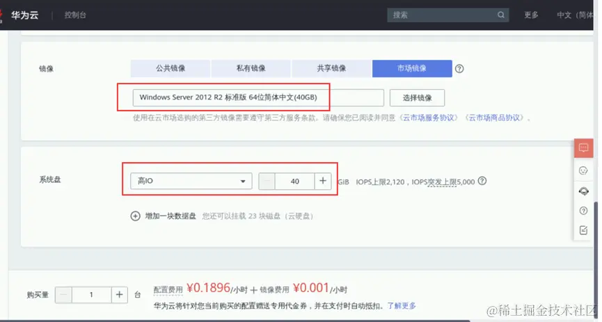 与创建Linux系统弹性云服务器流程一致,创建Windows系统云服务器的区别: