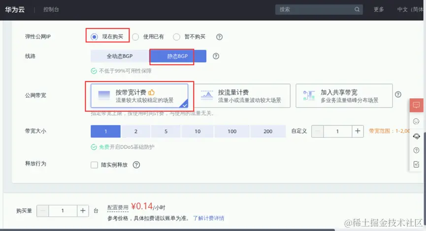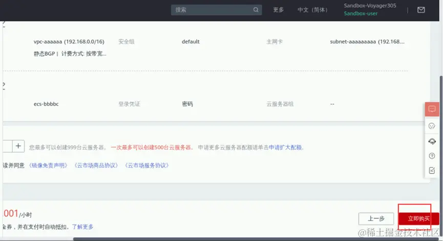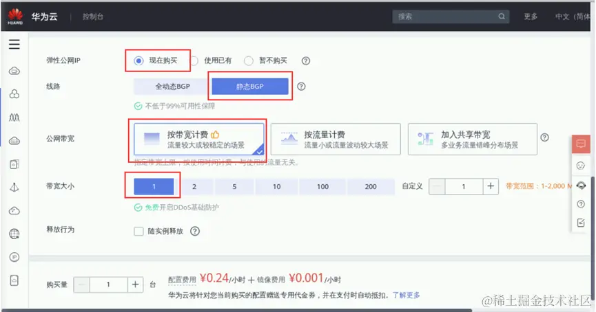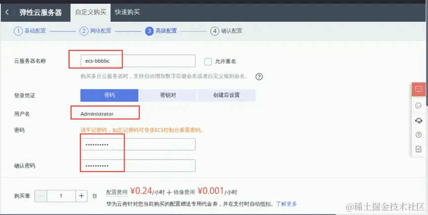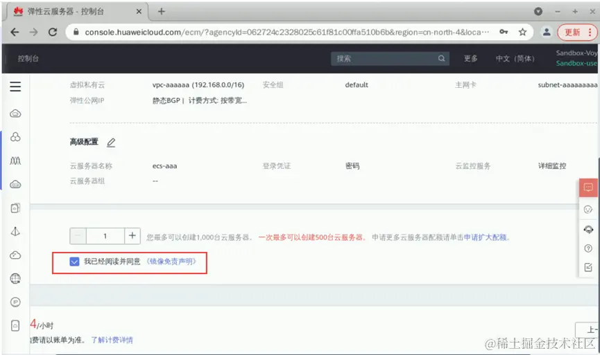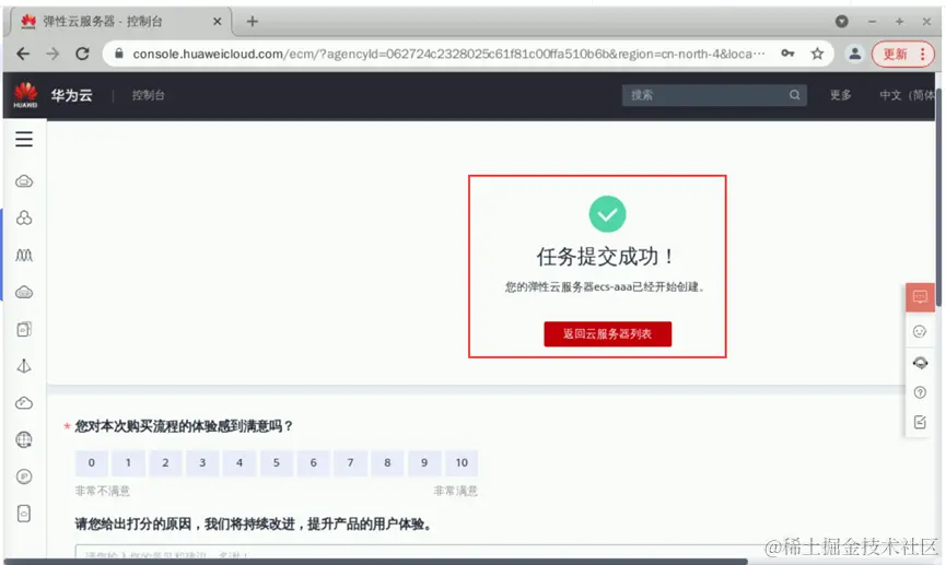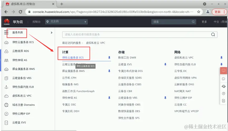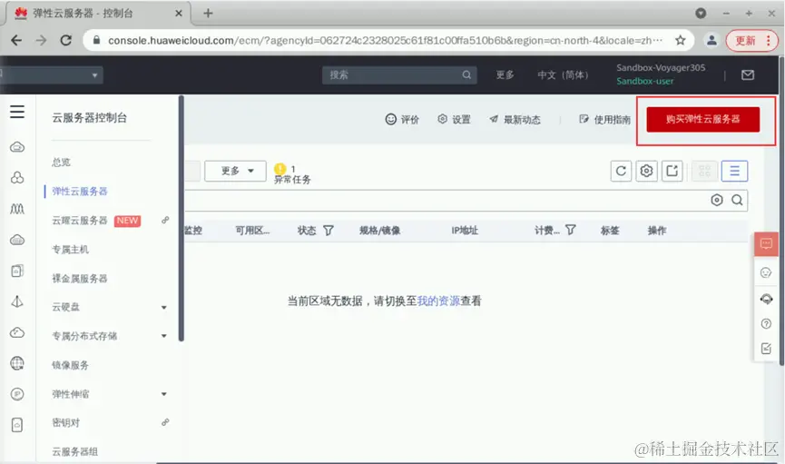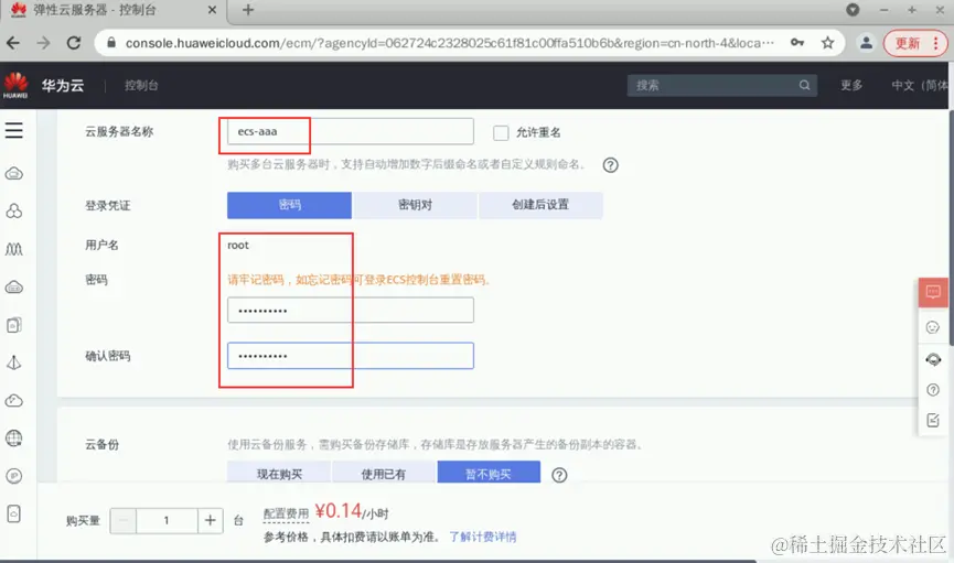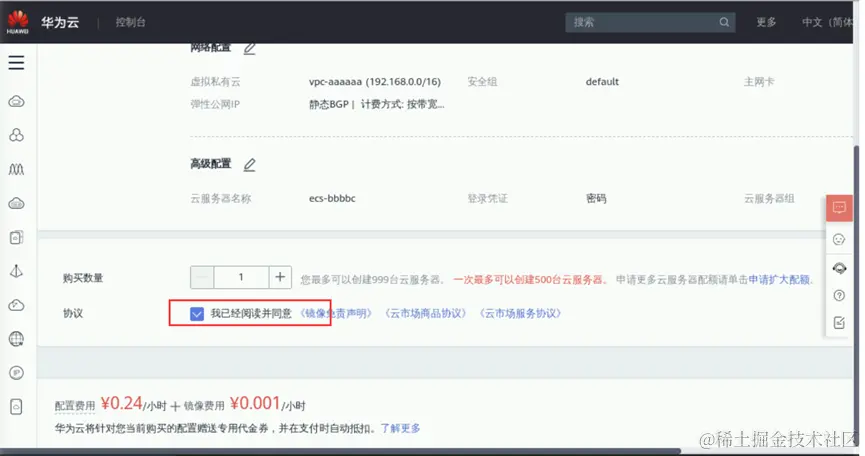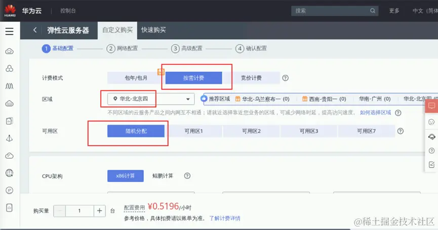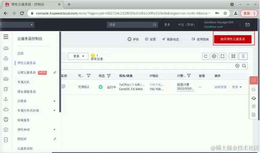 进入华为云“控制台”,鼠标移动到页面左侧菜单栏,点击服务列表->“计算" -> "弹性云服务器ECS”,进入云服务器控制台点击“购买弹性云服务器”,进入创建页面,配置参数: