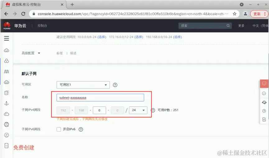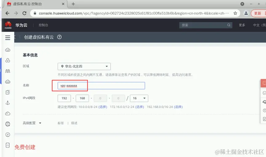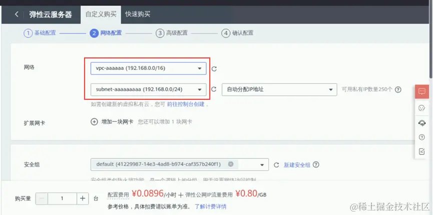 ① 虚拟私有云:选择步骤2.1创建的虚拟私有云VPC,