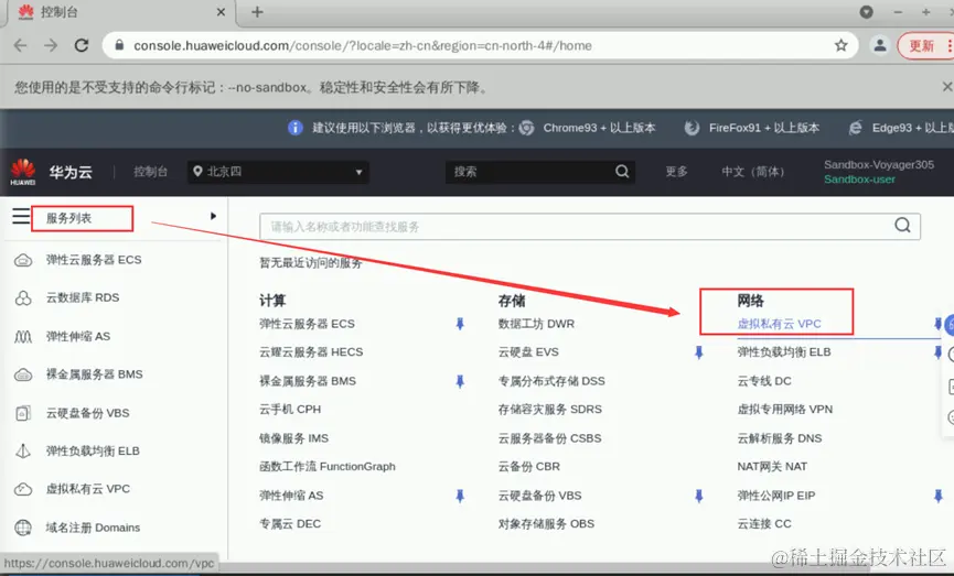 进入【实验操作桌面】,打开Chrome浏览器,首次可自动登录并进入华为云控制台页面。