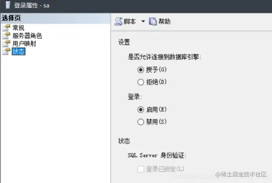 输入密码后,再点击左边的 状态,然后将权限设置为 授予和启用,点击确定退出即可。