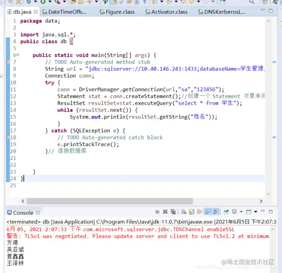 String url = "jdbc:sqlserver://10.40.146.243:1433;databaseName=学生管理;integratedSecurity=false;";