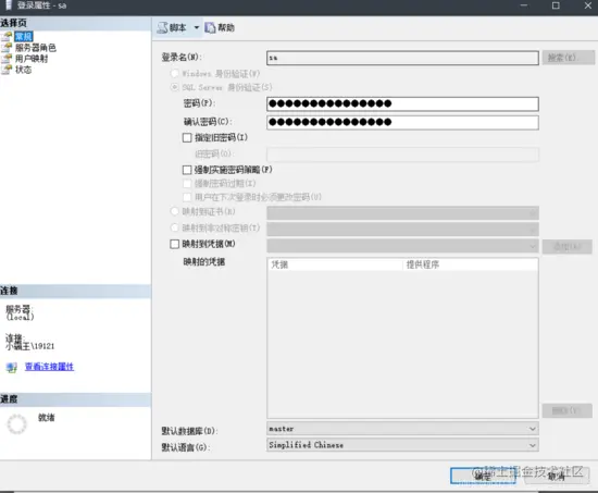 随后依次展开 服务器->安全性->登录名->sa , sa是默认的用户,我们要为其设置一个密码,