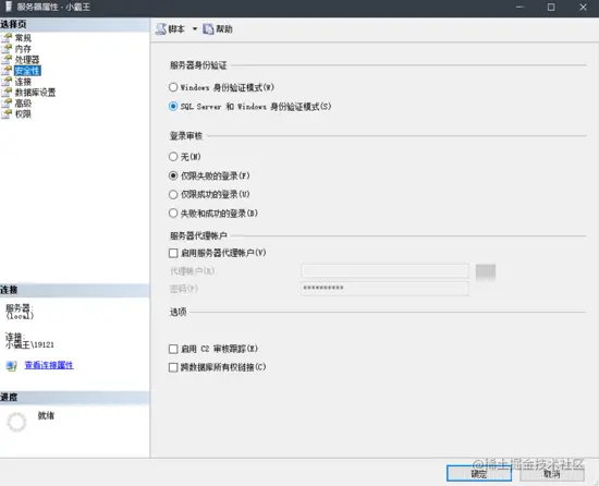 随后选择安全性,将windows身份验证改为sql sever和windows身份验证模式。点击确定即可。