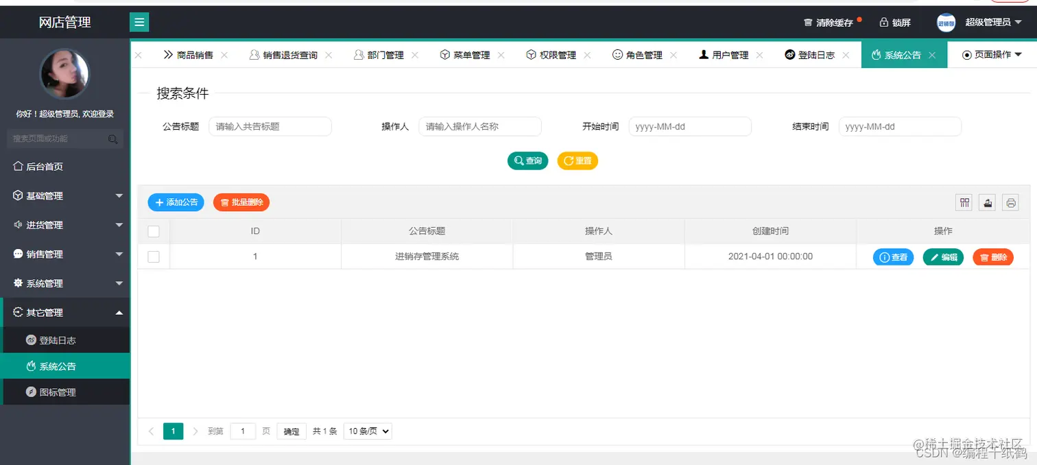其它管理—系统公告