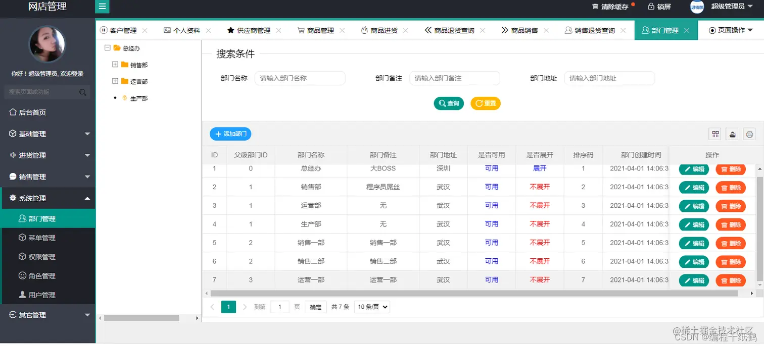 系统管理---部门管理