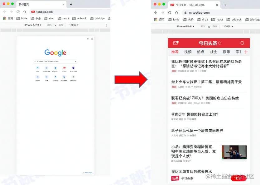 当我们在浏览器中输入 toutiao.com 回车后: