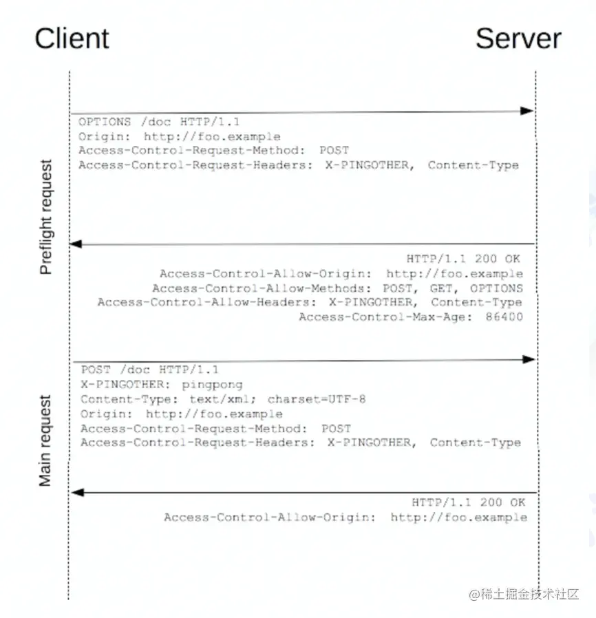 - 预请求:获知服务端是否允许该跨源请求(复杂请求)