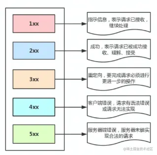 - 状态码:一个三位数,用代码的形式表示处理的结果,比如 200 是成功,500 是服务器错误;