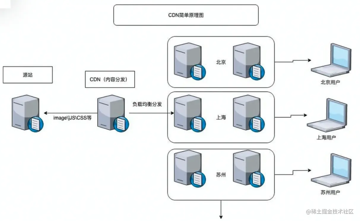 - 通过用户就近性和服务器负载的判断,CDN 确保内容以一种极为高效的方式为用户的请求提供服务