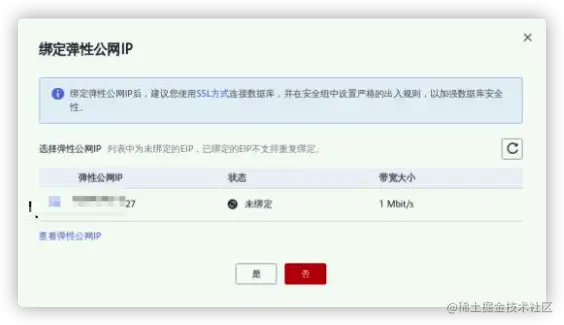 然后会弹出上面购买的公网IP,选择后点击