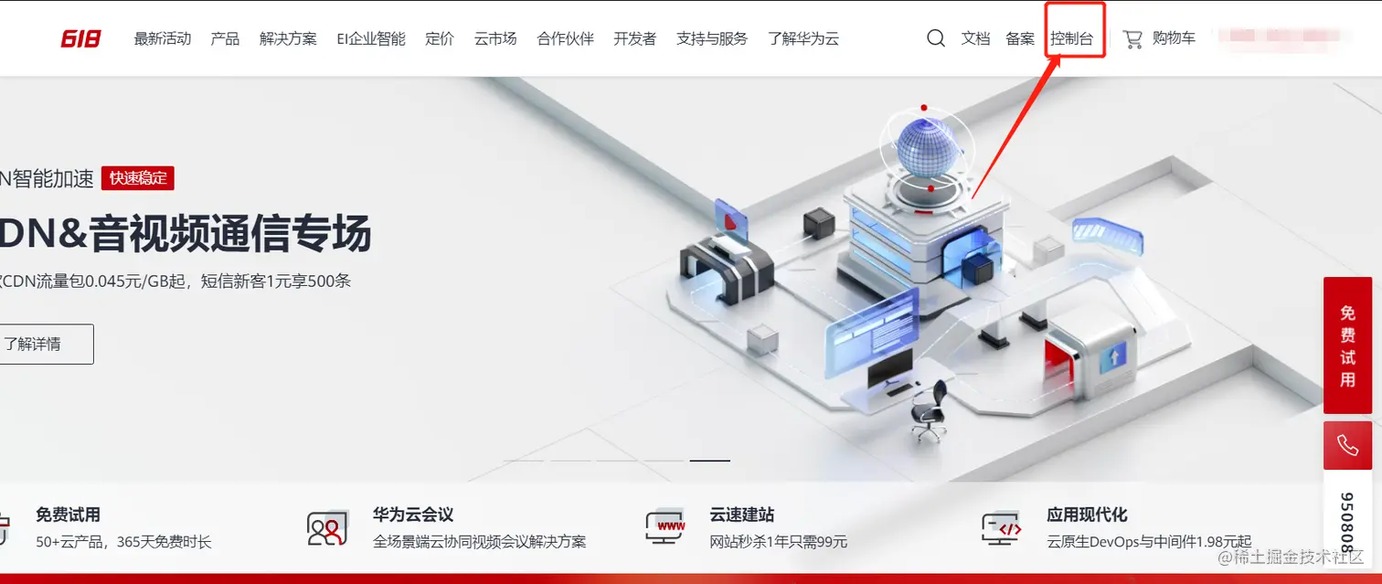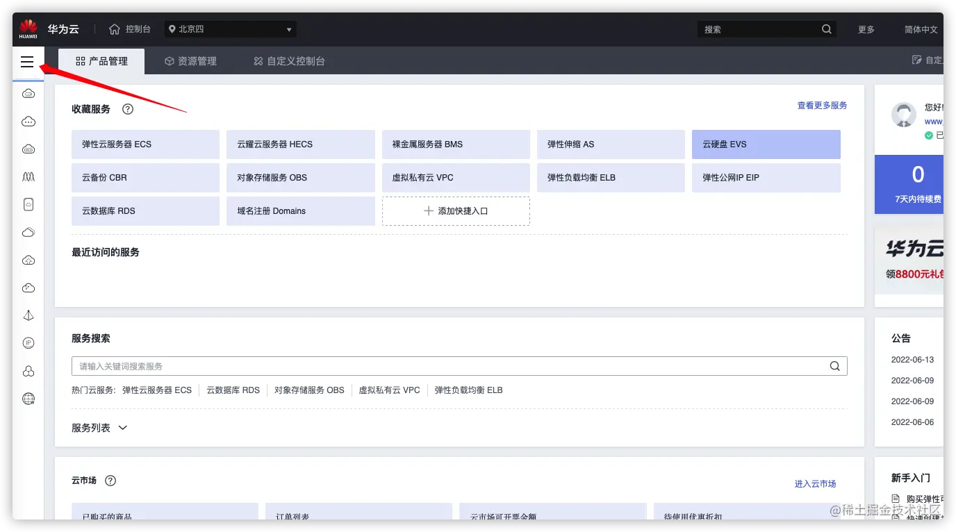 - 登录华为云后台,点击
