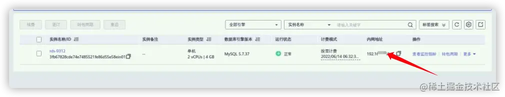 返回云数据库RDS列表查看已购买的数据库。 - 可以看到数据列表中已经出现了购买后的数据库。数据库目前还在创建中,这里要稍微等待5分钟左右,等待数据库创建完成。