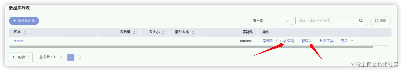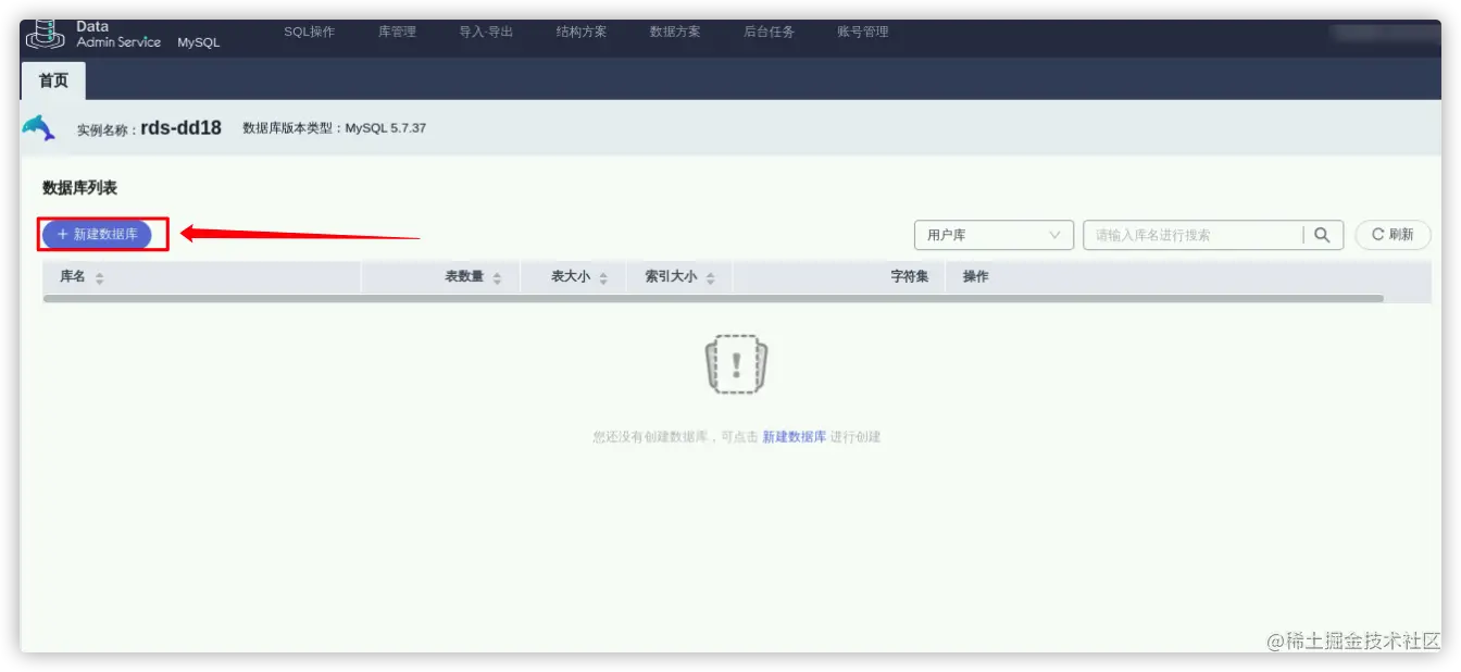- 到此数据库就创建完成了,后续可以在数据库列表点击