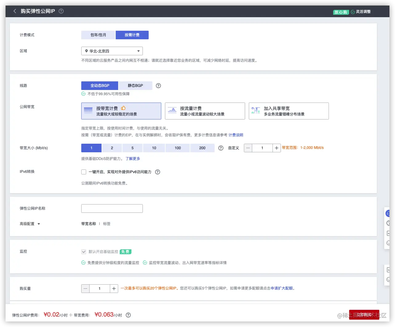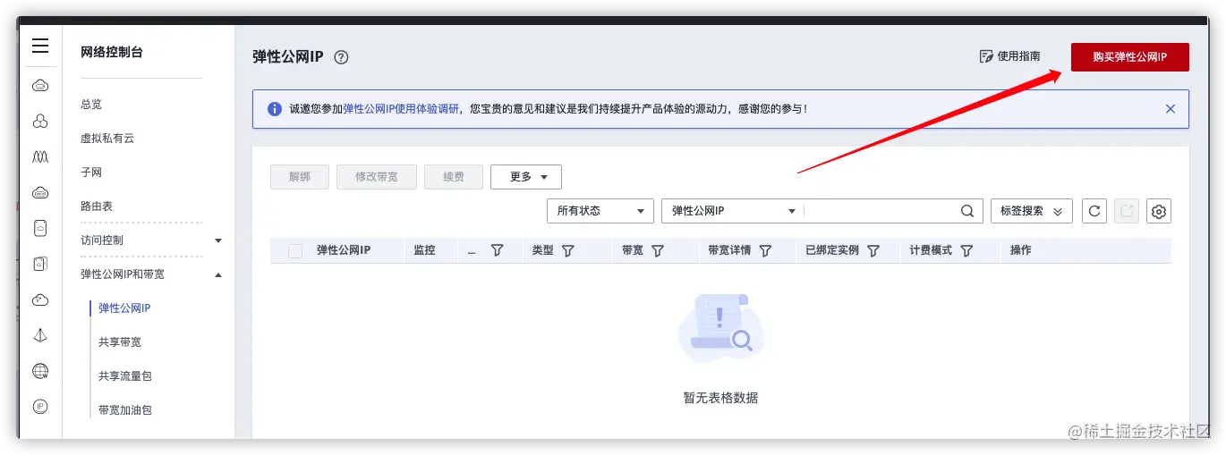购买弹性公网IP。