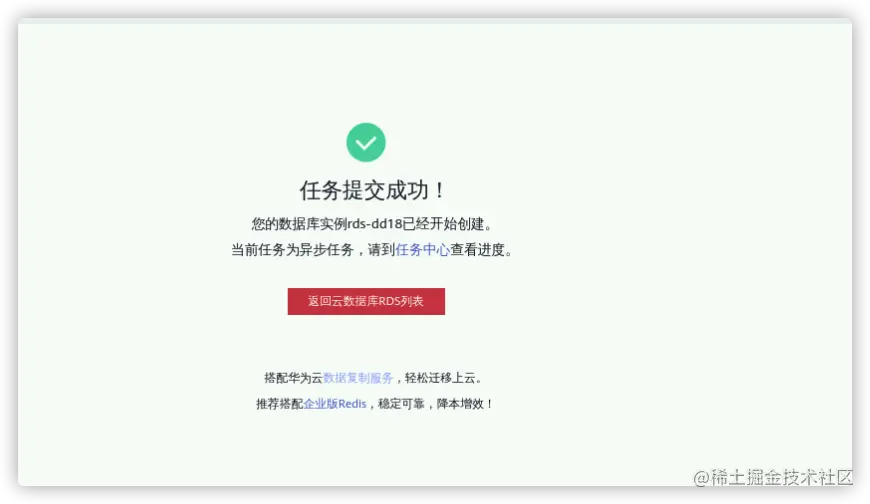 和购买云数据库一样,点击立即购买以后会展示出来选择的配置进行再次确认,确认无误点击