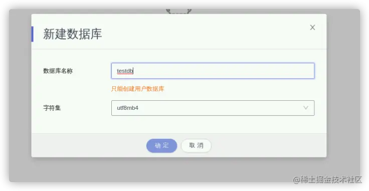 新建数据库。 - 定义数据库的名称和字符集,点击