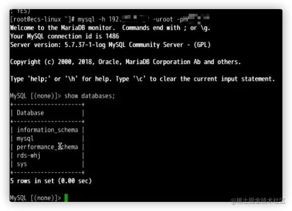 输入以下命令进入云数据库\
