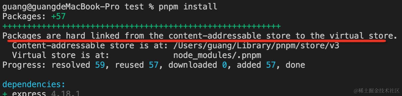 包是从全局 store 硬连接到虚拟 store 的,这里的虚拟 store 就是 node_modules/.pnpm。