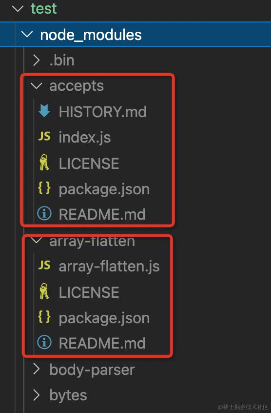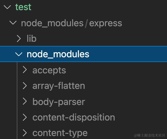 确实不是扁平化的了,依赖了 express,那 node_modules 下就只有 express,没有幽灵依赖。