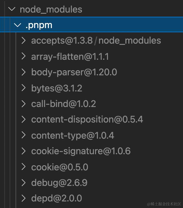 比如 .pnpm 下的 expresss,这些都是软链接,