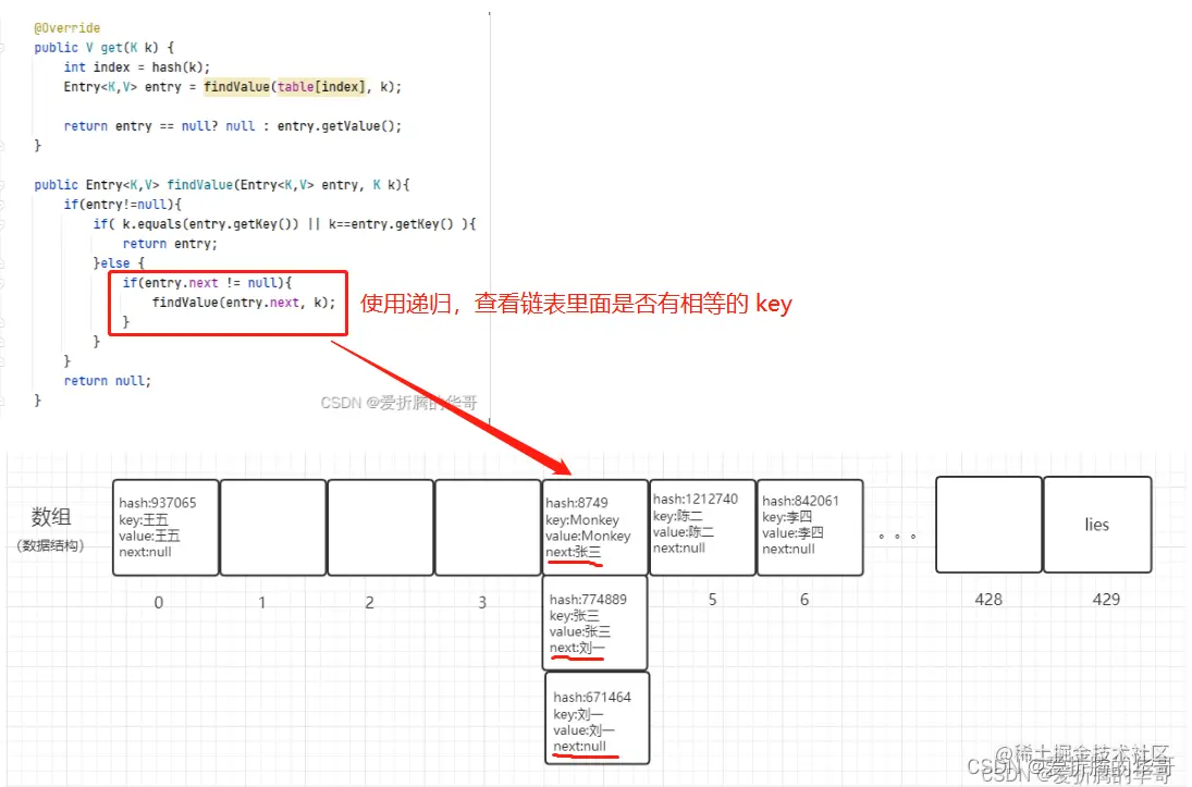 get方法传入的key,就是说首先是通过咱们这个key呢,进行这个哈希算法,哈希算法出来之后算出它的这个index,index就是这个下标,