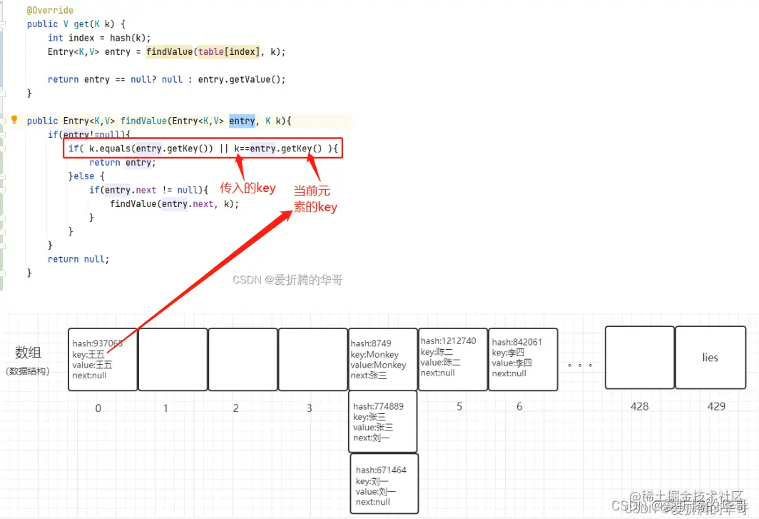 然后如果传入的key,和王五这个元素的key,他们相等,是不是就取出来了,就这么简单,
