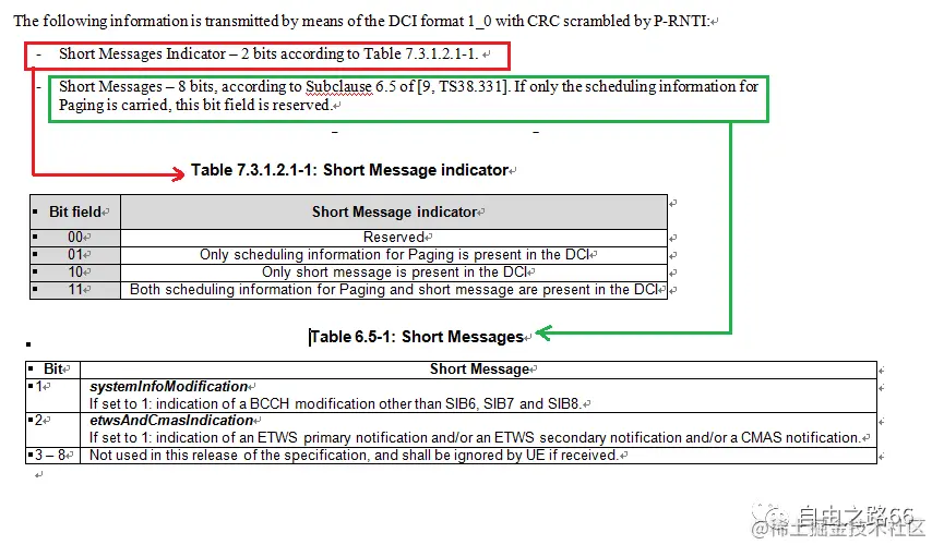 P-RNTI加扰的DCI format 1-0除了用于寻呼之外,还可以用于通知系统消息变更、ETWS等。当Short Message Indicator仅用于指示Only short message时候,不调度PDSCH。