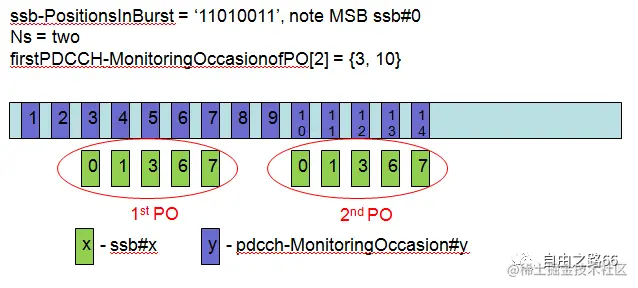 下面对Ns的含义进行解释。将paging周期分成的N份后,在每一份又分成N是个PO,一个PO映射完小区配置的所有SSB对应的Paging Occasion,还是以示例来说明。PagingSearchSpace来确定pdcch-MonitoringOccasion的位置,对其位置进行编号。