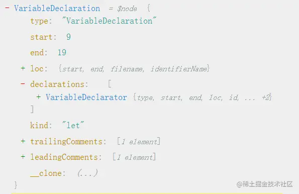 每种AST都有自己的属性,其中有一些属性是每种AST都会有的,这些就是AST的公共属性。