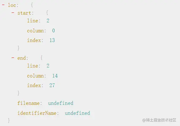 start属性表示该节点在源码中的开始下标,end属性则表示该节点在源码中的结束下标。