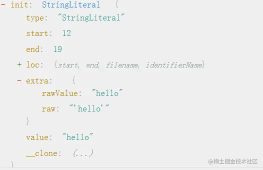 如果我们想要修改它的值,只需要修改 extra.rawValue 即可,但是如果我们想要将赋值号右边整个字面量都换掉,则修改 extra.raw 即可,有时候我们想要将代码中的单引号替换成双引号(或者反过来),就会用到这个属性。