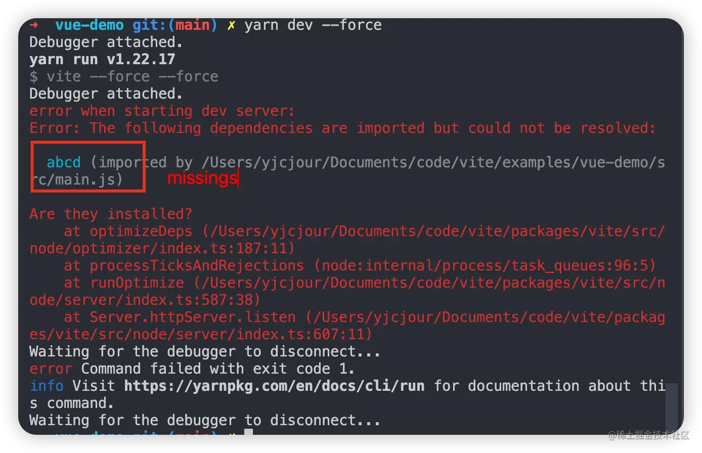 - 如果开启了 force 或者项目依赖有变化的情况,先保证缓存目录干净(node_modules/.vite 下没有多余文件),在 node_modules/.vite/package.json 文件写入