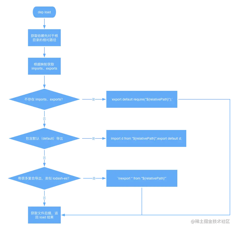 import d from "${relativePath}";export default d;;对于 DEMO 而言,lodash-es 因为有默认导出,同时也会执行 c 的流程,最终生成的 contents 如'import d from "./node_modules/lodash-es/lodash.js";export default d;\nexport * from "./node_modules/lodash-es/lodash.js"'; - 在上一步的基础上,如果有其他的导出表达式比如
